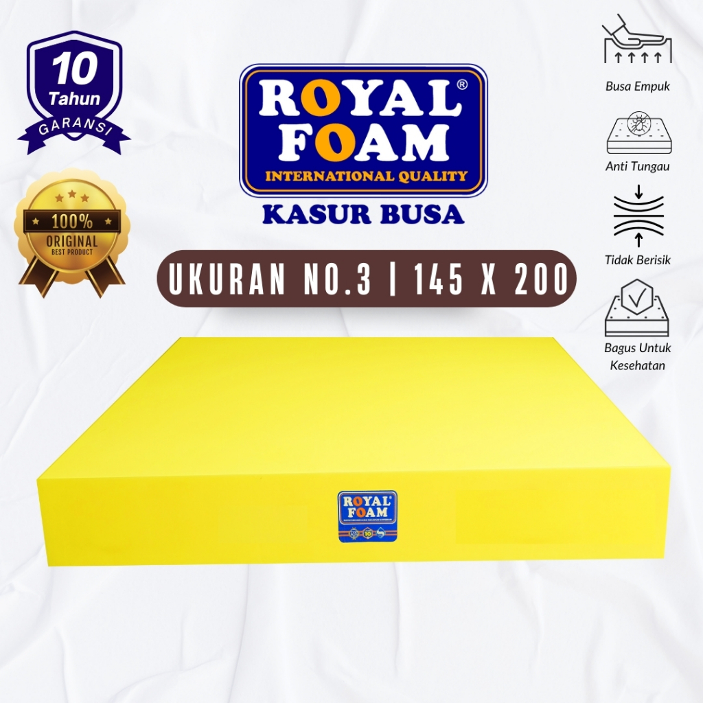 Spesifikasi Kasur busa Royal Foam : - Busa Density 16 - Warna Busa Kuning - Garansi Resmi 10 Tahun - Vacuumable ( busa dapat divacuum) - Busa bersifat empuk, membal, tdk amblas, cepat balik saat ditekan. - Terdapat barcode yang menempel pada busa - Untuk klaim garansi bisa dibantu pihak toko , nanti kami yang teruskan ke pihak distributor.